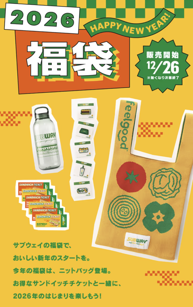サブウェイの福袋は毎年予約なしのスタイルで、2026年版も同じ方式です。